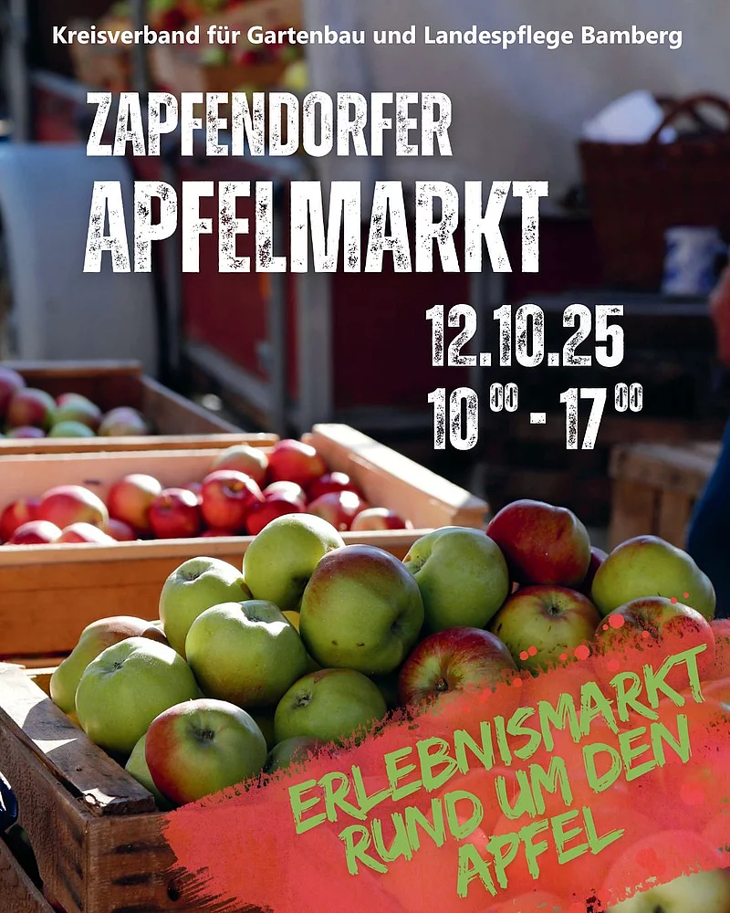 Eine Initiative zur Vermarktung von Obst aus traditionell bewirtschafteten Streuobstwiesen - so startete der Apfelmarkt des Landkreises Bamberg im Jahr 1999 in Burgebrach. Seitdem hat sich viel getan: Der Apfelmarkt, zu dem der Kreisverband Bamberg für Gartenbau und Landespflege alljährlich am 2. Sonntag im Oktober einlädt, ist zu einem Besuchermagneten geworden. Zum 25-jährigen Jubiläum findet der Apfelmarkt im Jahr 2025 in Zapfendorf statt.