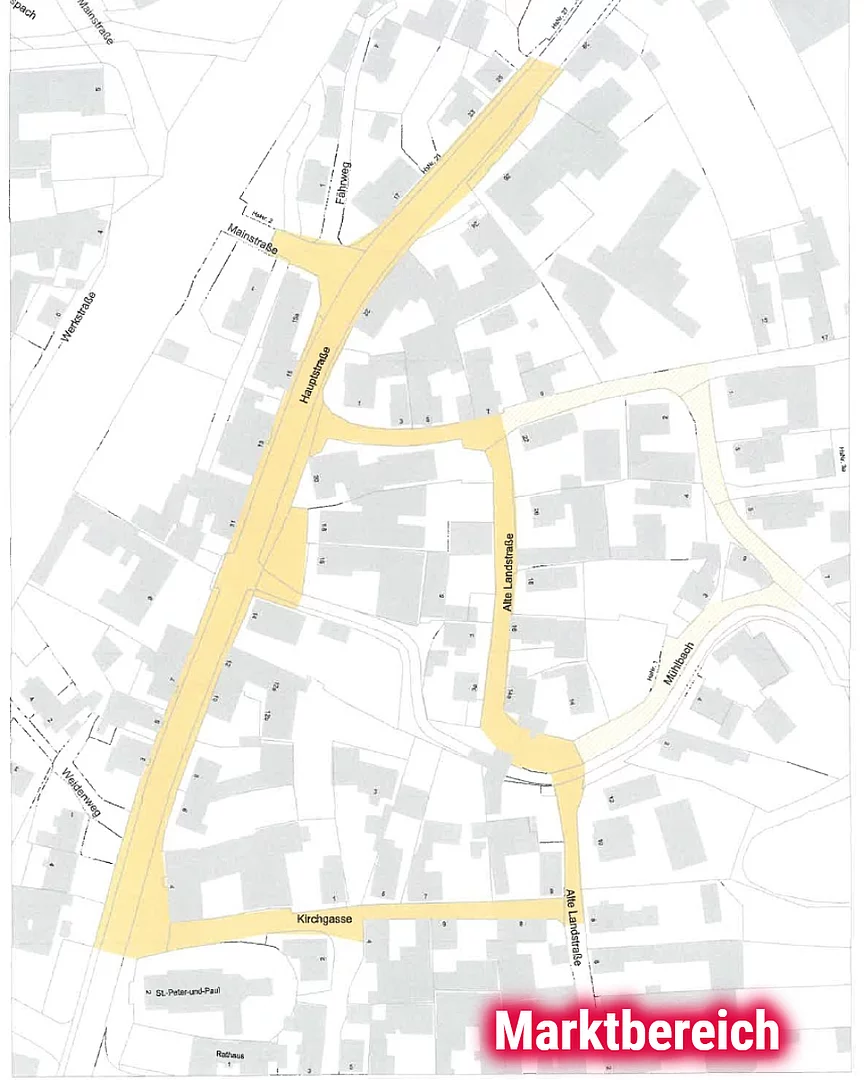 Die Straßenabschnitte des gesamten Marktbereiches werden ab Sonntag, den 12.10.2025, 07:00 bis ca. 22:00 Uhr für den gesamten Verkehr gesperrt. Die Sperrstellen hierfür werden an folgenden Punkten aufgestellt: