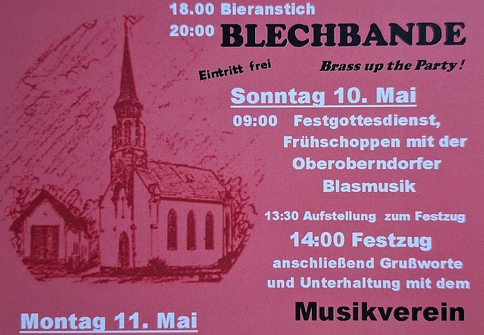 Eine Übersicht über alle Termine (Kirchentermine, Stammtische, vereinsinterne Termine usw.) können Sie dem jeweils aktuellen Mitteilungsblatt entnehmen.
