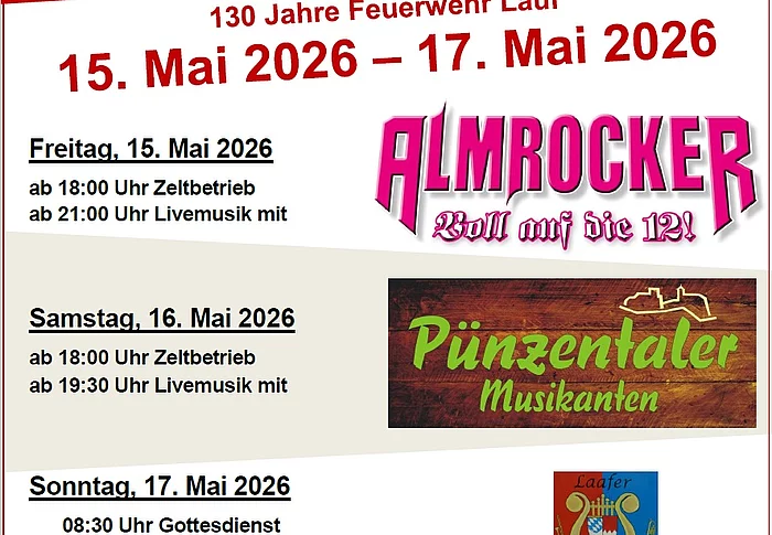 Gegen 17 Uhr wird der Maibaum von den Laafer Junga und den Mitgliedern der Feuerwehr Lauf in der Dorfmitte (Nähe Osterbrunnen am Lindenplatz) gestellt.