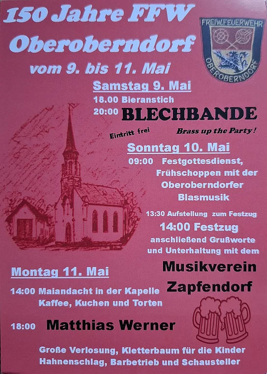 Jubiläumsfest: 150 Jahre FFW Oberoberndorf