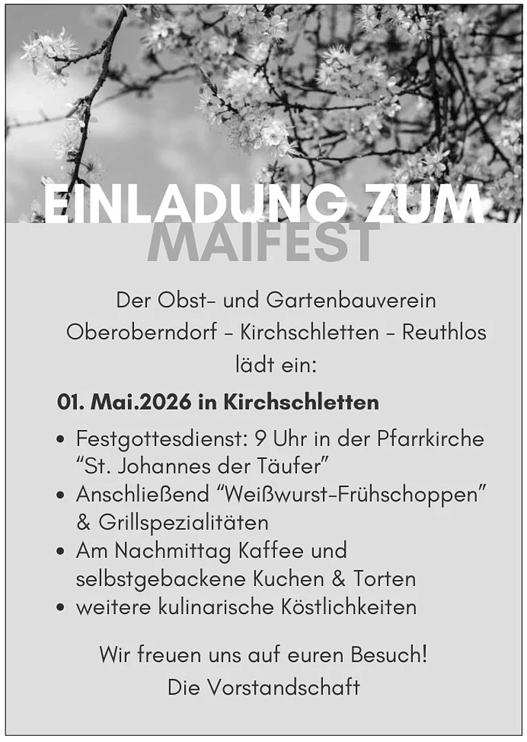 Maifest 2026 (OGV Oberoberndorf-Kirchschletten-Reuthlos)