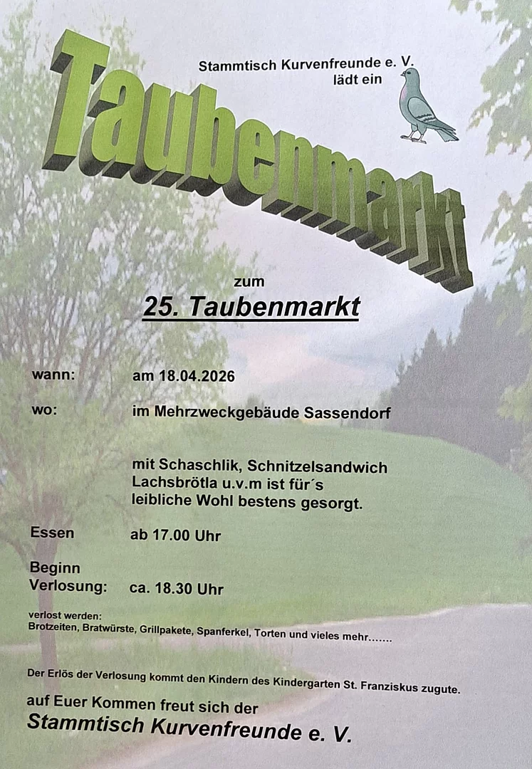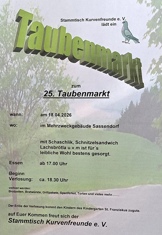 Der Stammtisch Kurvenfreunde e. V. lädt ein zum 25. Taubenmarkt.