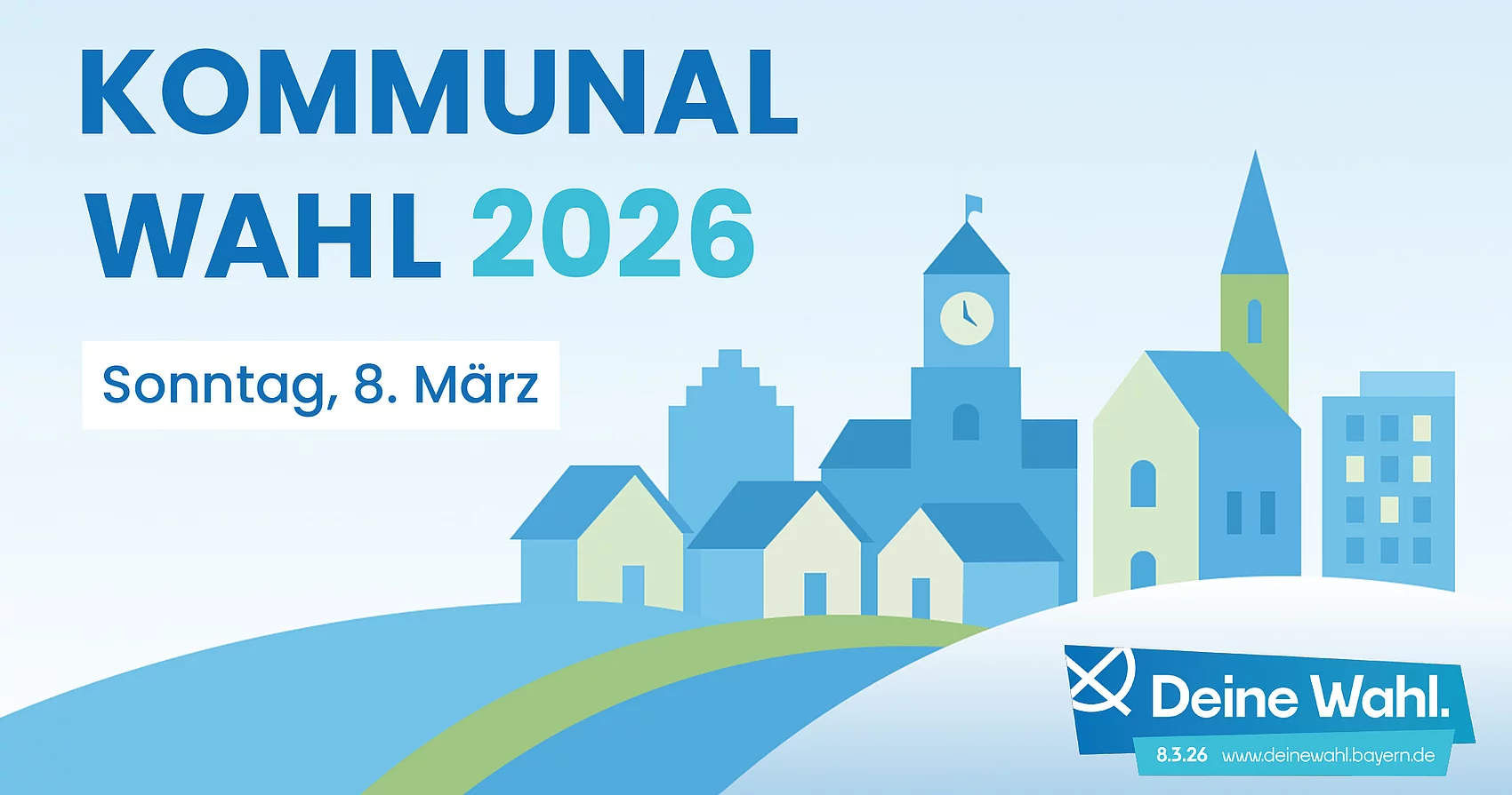 Die Bayerische Staatsregierung hat den Wahltermin für die nächsten allgemeinen Gemeinde- und Landkreiswahlen auf den 8. März 2026 festgesetzt. Eine mögliche Stichwahl findet am 22. März 2026 statt. Hier finden Sie die amtlichen Bekanntmachungen sowie weitere Informationen rund um die Kommunalwahl 2026.