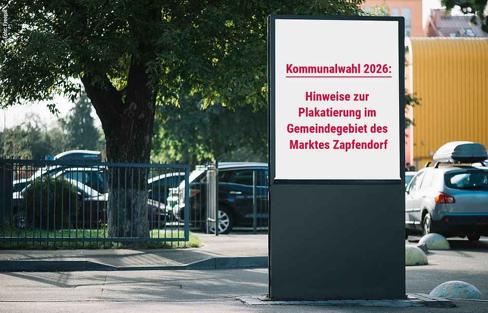 Die geltenden Auflagen und Bedingungen sowie das Formular zur Beantragung einer Plakatierung anlässlich einer Gemeindewahl im Gemeindegebiet des Marktes Zapfendorf finden Sie hier: