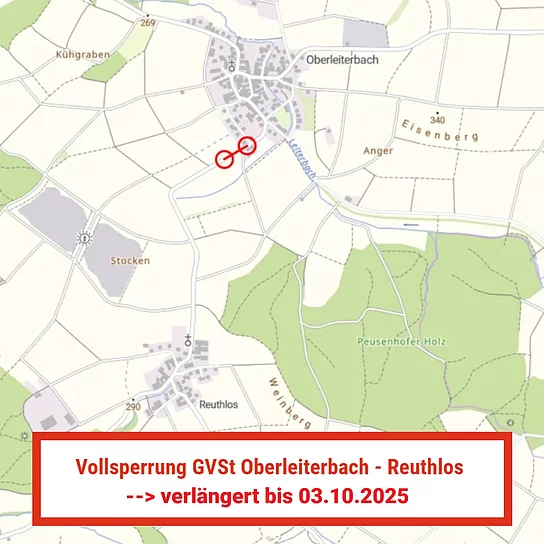 Vollsperrung GVSt Oberleiterbach - Reuthlos