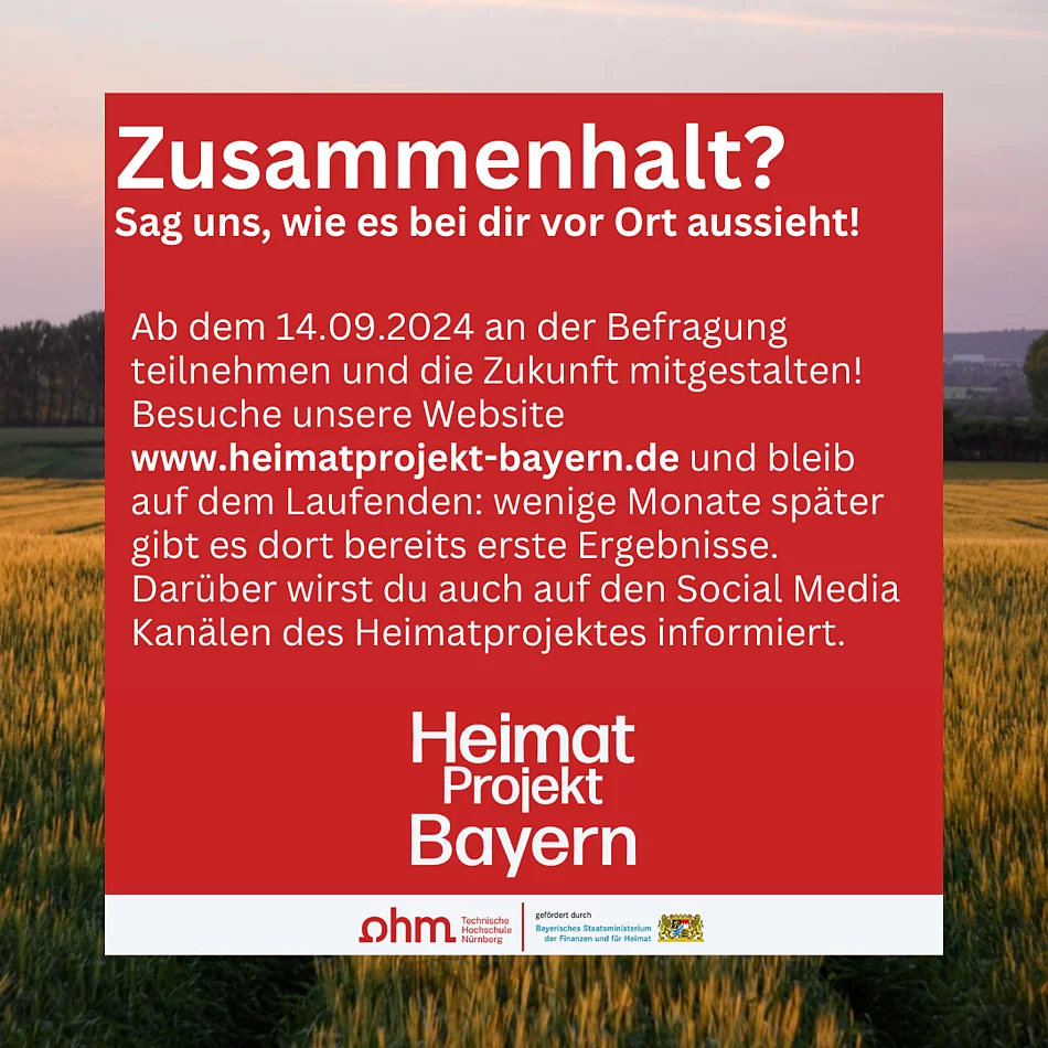 Wie ist es eigentlich um den sozialen Zusammenhalt in ländlichen Regionen Bayerns bestellt und welche Ideen haben die Bürgerinnen und Bürger, um ihn zu stärken? – Das untersucht die Technische Hochschule Nürnberg bis 2026 in einem großen Forschungsprojekt in ganz Bayern. Gefördert wird das Heimatprojekt vom Bayerischen Staatsministerium der Finanzen und für Heimat.