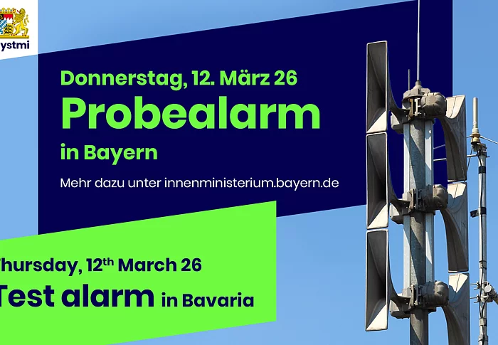 Der landesweit einheitliche Probealarm findet am Donnerstag, den 12. März 2026 statt. Gegen 11:00 Uhr werden zeitgleich in Landkreisen und Kommunen in ganz Bayern mit einem Probealarm die Warnmittel ausgelöst. Dabei wird eine Probewarnung an alle Warnmultiplikatoren (zum Beispiel Rundfunksender, App-Server) geschickt, die am Modularen Warnsystem (MoWaS) des Bundes angeschlossenen sind. Die Warnmultiplikatoren versenden ihrerseits die Probewarnung in ihren Systemen beziehungsweise Programmen an…